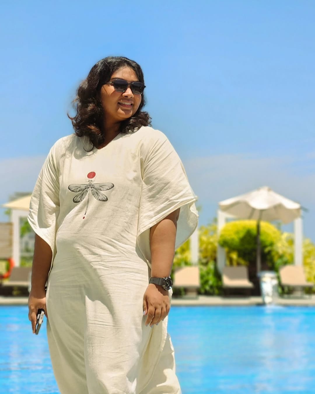 ₹1,990.00LINEN COTTON KAFTAN WITH INDIGO BUTTERFLY MOTIF