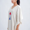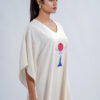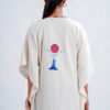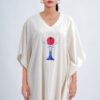 LINEN COTTON KAFTAN WITH RED MOON DEER MOTIF