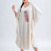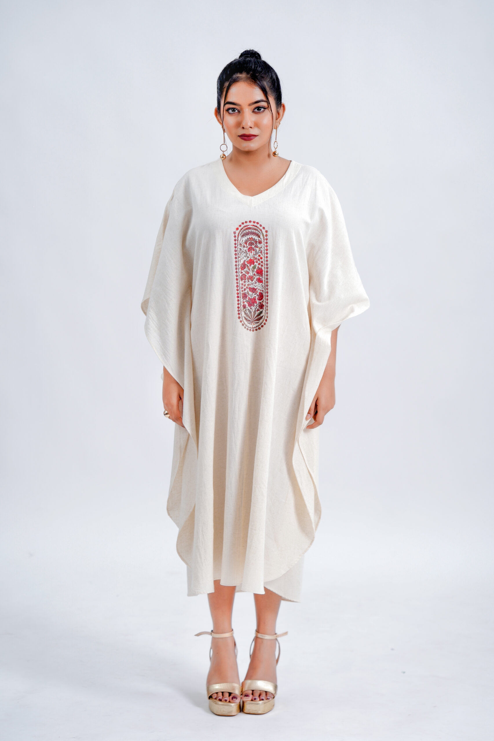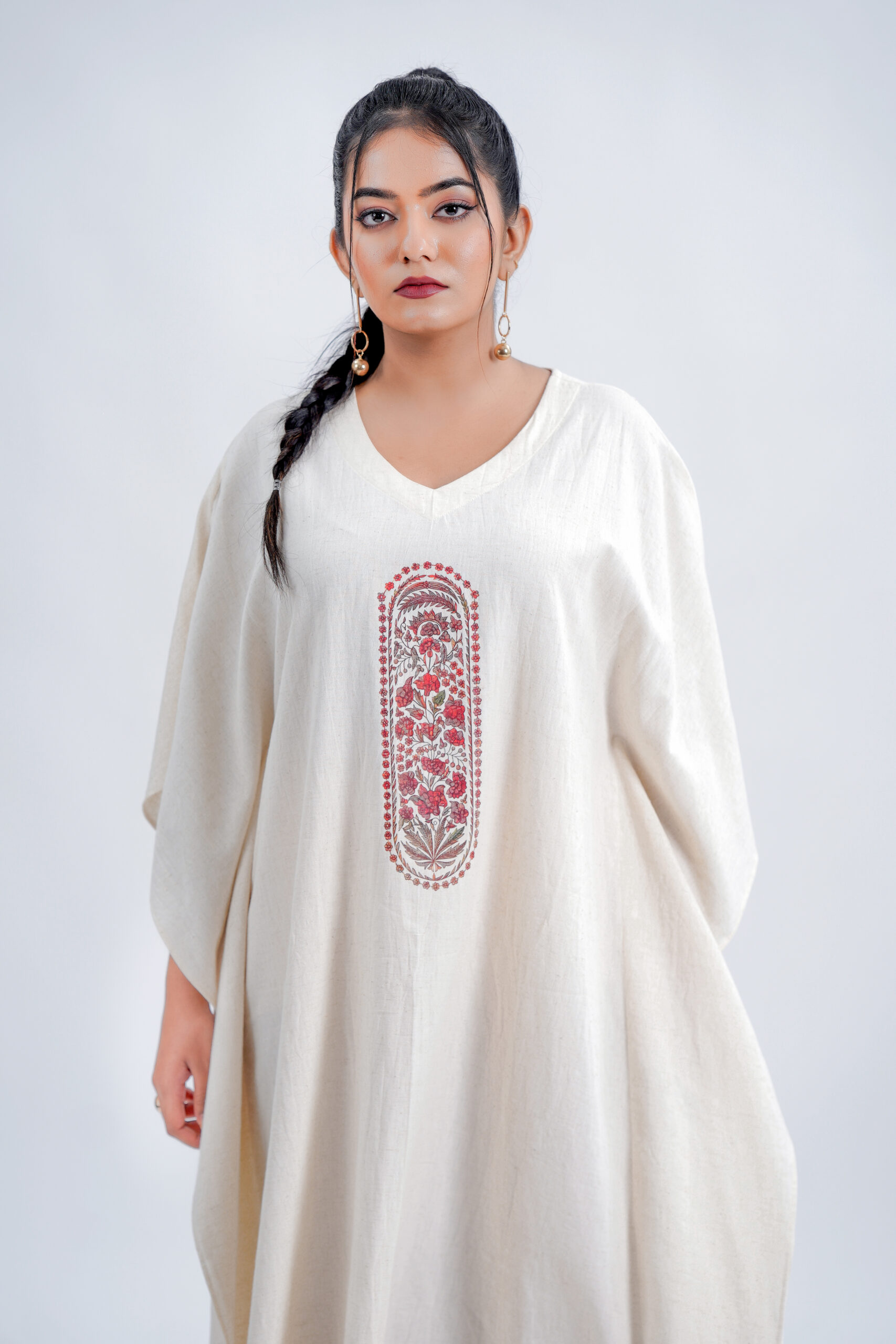 LINEN COTTON KAFTAN WITH RED ARK MOTIF