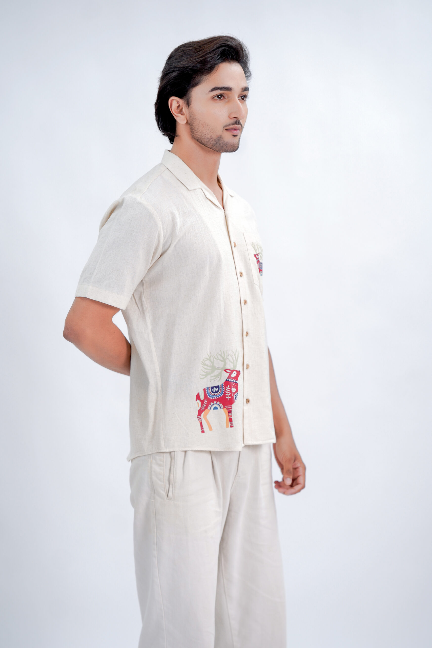 Crafted from a premium linen–cotton blend, the Unik Together Wear celebrates harmony through design. Both the men’s shirt and women’s long top feature our signature Red Deer motif, printed using advanced DTF technology for lasting vibrance and precision.