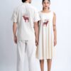 The collection is designed to blend comfort with understated elegance — the men’s shirt offers a relaxed, tailored fit, while the women’s long top flows gracefully, making it versatile to style with a skirt or pants. Perfect for couples who appreciate minimal sophistication with an artistic soul.